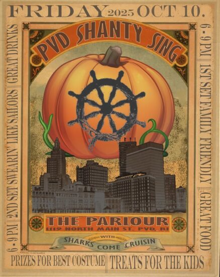 PVD Shanty Sing – The GREAT PUMPKIN Edition, prizes for best costume. The first set is family friendly (till 7:30), 2nd set we’ll be swearing like sailors. Come out for some great food, have a few drinks and sing-along