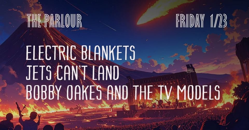 ELECTRIC BLANKET/JETS CAN’T LAND/BOBBY OAKS & THE TV MODELS Friday Jan. 23, 2026 @ 8pm doors $10.00 Providence local heavyweights Electric Blankets – 11pm Jet’s Can’t Land – 10pm Bobby Oakes and the TV Models – 9pm 21+ $10 cover